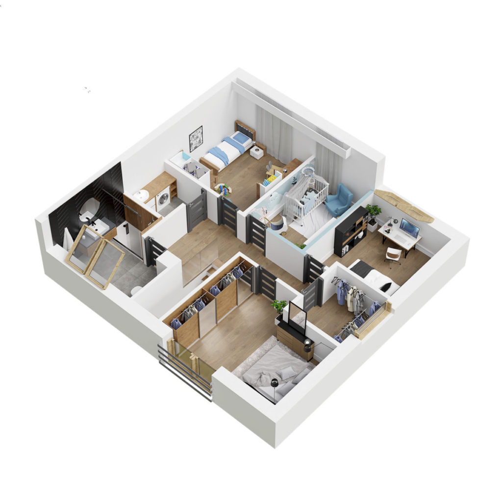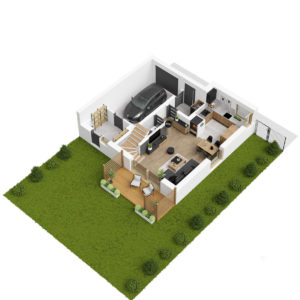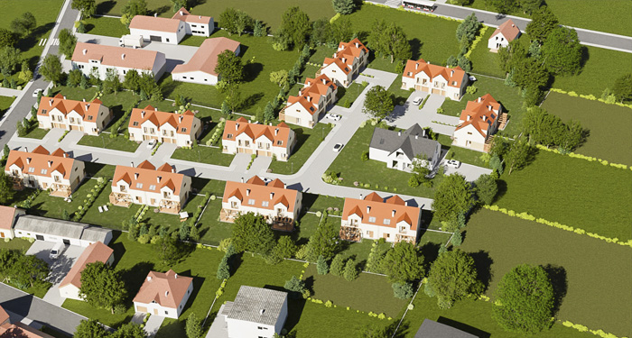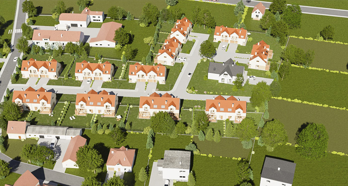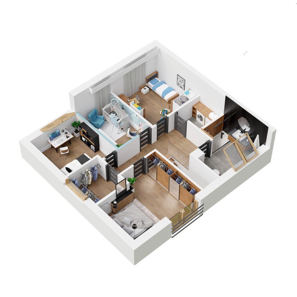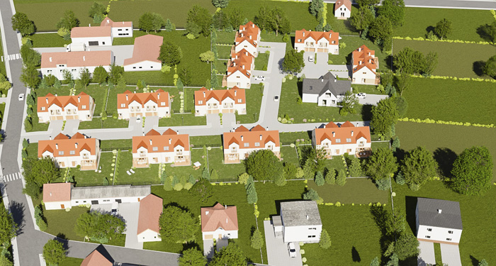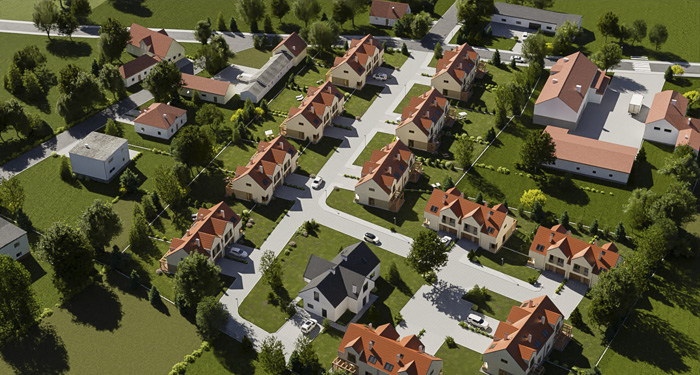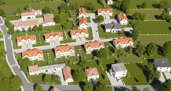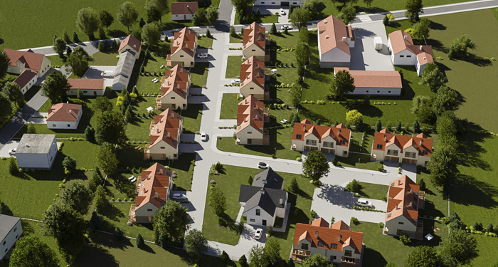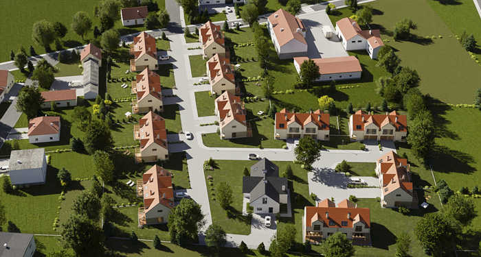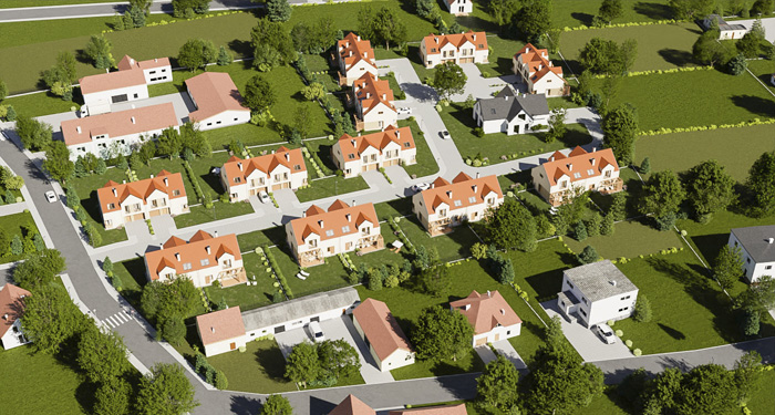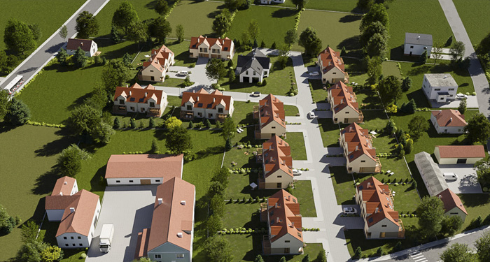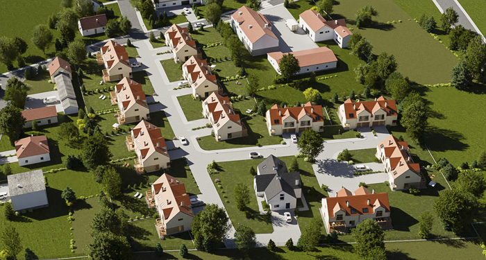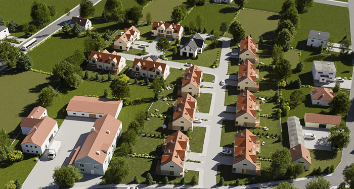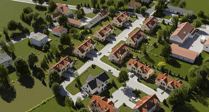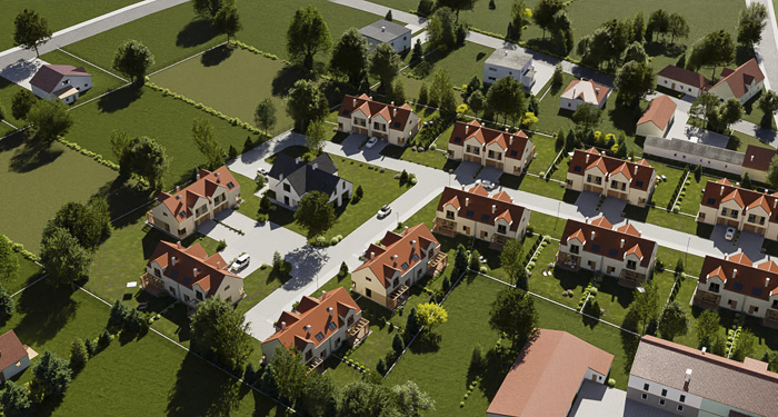 Kameralne osiedle 24 domów w zabudowie bliźniaczej, z których każdy ma powierzchnię użytkową 130,92 m² i doskonale zaprojektowany układ pomieszczeń.